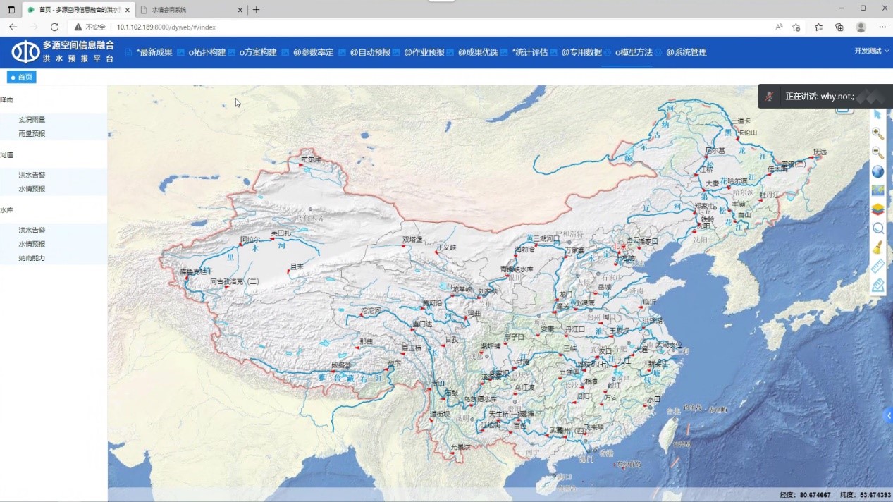 基于微服務架構,通過融合氣象、水文、遙測和空間等多源數據,集成集總式、分布式和水力學多種模型,實現河流、水文監測站點、水庫交互式預報以及網格分布式預報,提高洪水預報效率和預報精度,延長預見期,實現“預報”“預警”“預演”功能。