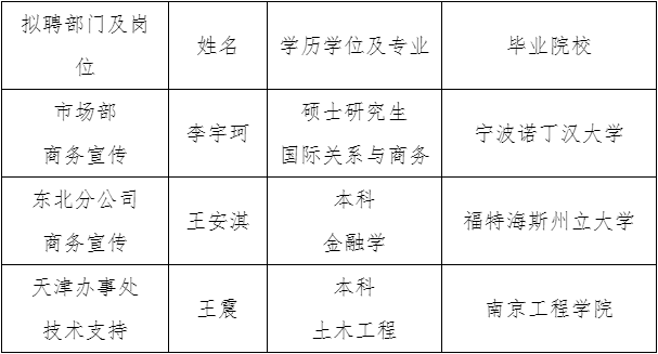 根據(jù)水利部關(guān)于部屬國(guó)有企業(yè)公開(kāi)招聘工作有關(guān)規(guī)定,現(xiàn)將我單位近期擬聘人員予以公示。公示期間,如有問(wèn)題,請(qǐng)向我單位反映。